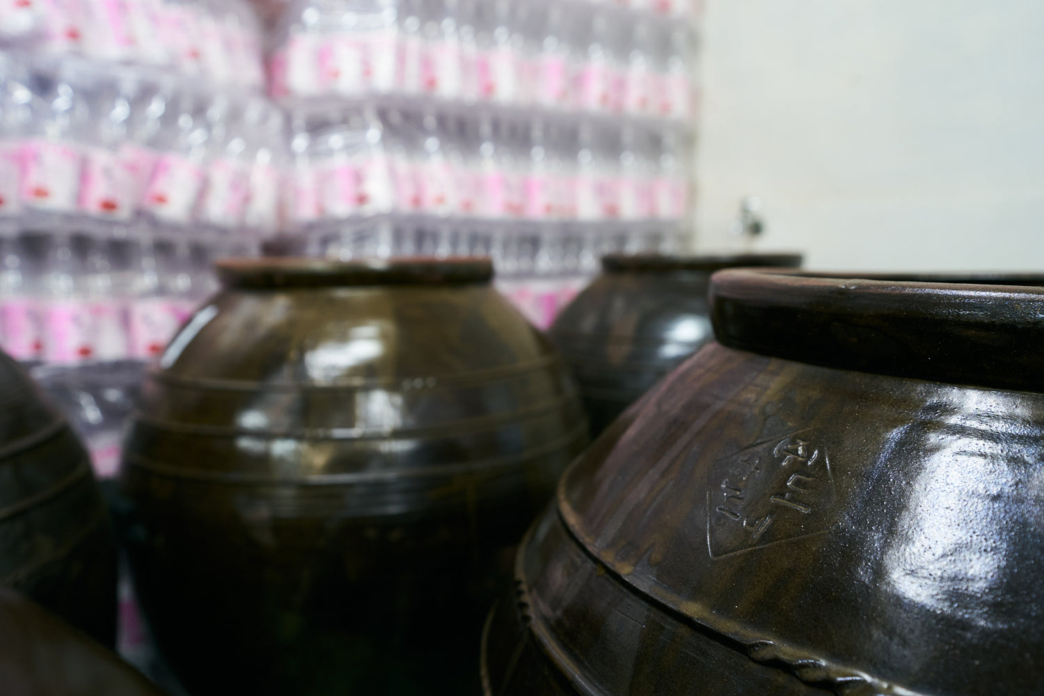 韓国の人間国宝が焼いた呼吸するカメで熟成させています。呼吸するカメの中で生きている酵母と乳酸菌が熟成されることで芳醇な香りとなります。